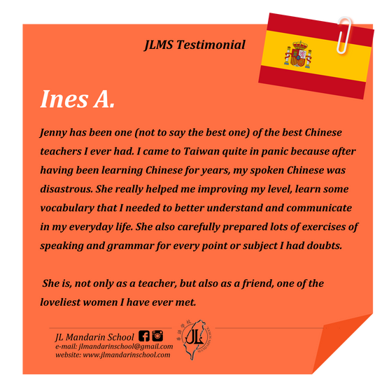 Jenny has been one (not to say the best one,hahaha) of the best Chinese teachers I ever had. I came to Taiwan quite in panic because after having been learning Chinese for years, my spoken Chinese was disastrous. She really helped me improving my level, learn some vocabulary that I needed to better understand and communicate in my everyday life. She also carefully prepared lots of exercises of speaking and grammar for every point or subject I had doubts.
